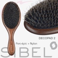 La brosse plate à picots Decopad avec soies de sanglier démêle facilement les cheveux tout en massant le cuir chevelu.Elle garde les cheveux naturellement huilés et revitalisés.